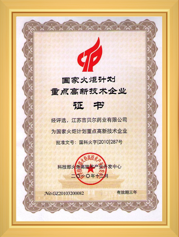 国家火炬计划重点高新技术企业(2010-2013年)